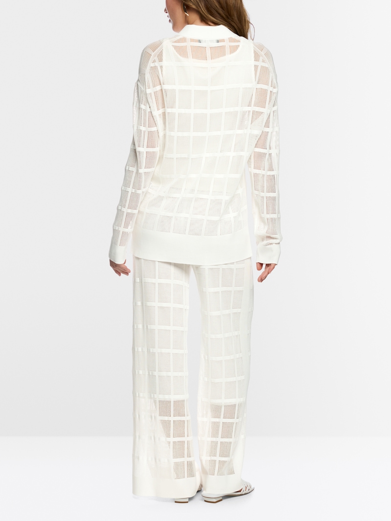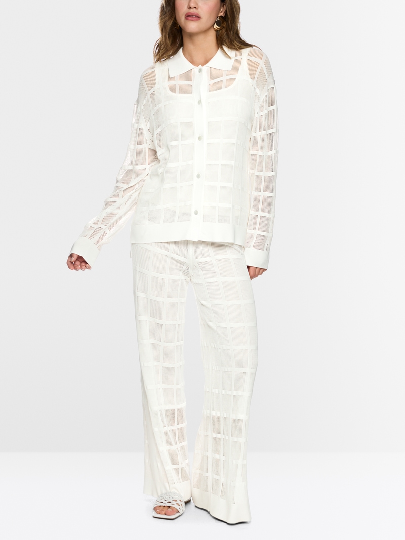 Košeľa voľného strihu z viskózového elastického materiálu s prelamovaným štvorcovým vzorom. Bočné rozparky a dlhší zadný lem dodávajú modernú ľahkosť a slobodu pohybu.