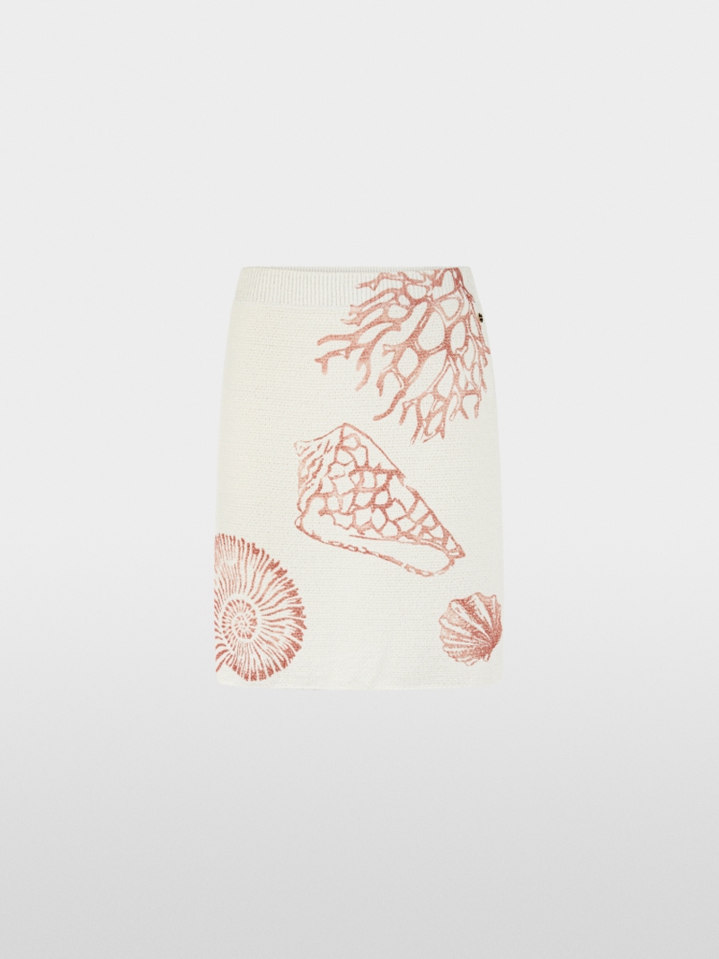 Ľahký jemný úplet s decentným textúrovaným vzorom a elegantným buklé dodáva dizajnu jedinečný nádych. Potlač mušle v ručne kreslenom štýle dodáva letný, umelecký nádych. Sukňa je podšitá.